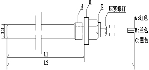 4、例如WZC-200-2:表示Cu50傳感器,螺紋G1/2,插入深度150mm長(zhǎng),總長(zhǎng)550mm。直徑12mm。