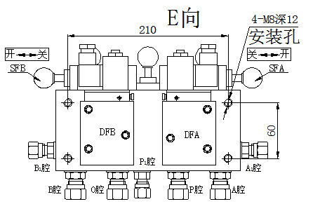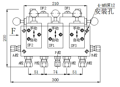 1)、安裝尺寸:4-M8牙深12mm孔間距為210X60mm;