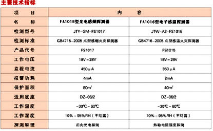 FA1018型光電感煙探測器、FA1016型電子感溫探測器