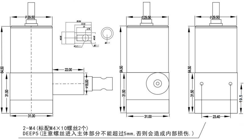 1、利用安裝支架或底部4個固定螺絲孔,依現(xiàn)場及機器安裝空間設施需要,選擇正確的方位直接安裝。